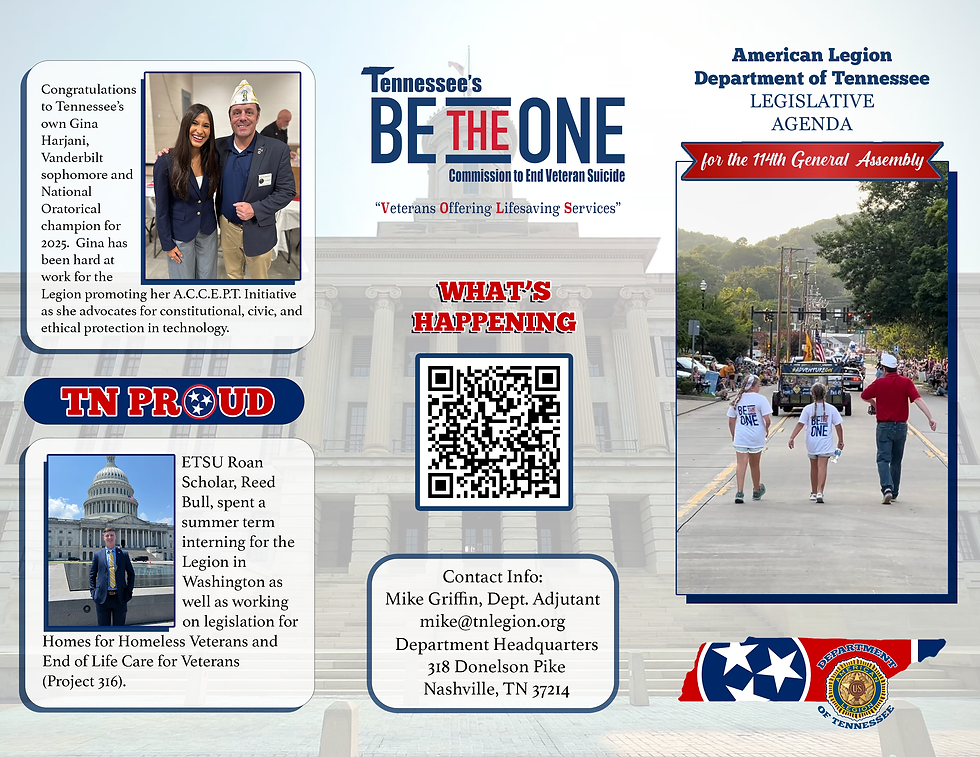 No more playing second fiddle to outside forces who want to take advantage of our Veterans in the Volunteer State. Doing this will have a primary effect of ensuring the great Department of Tennessee is being heard and listened to by our elected officials, it will cement our place of being a go to when our legislators and their staff need advice or when they need a VSO to testify on any number of topics. Attacking this mission from this perspective will create buzz amongst other VSOs and Veterans alike, creating an ancillary effect of making recruiting somewhat easier. However, these primary and secondary effects must be taken advantage of by all active Legionnaires and the greater Legion Family, or they’ll wither on the vine.